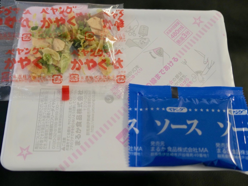 火薬を入れお湯を入れて、3分待ってお湯を捨ててソースをかけます。