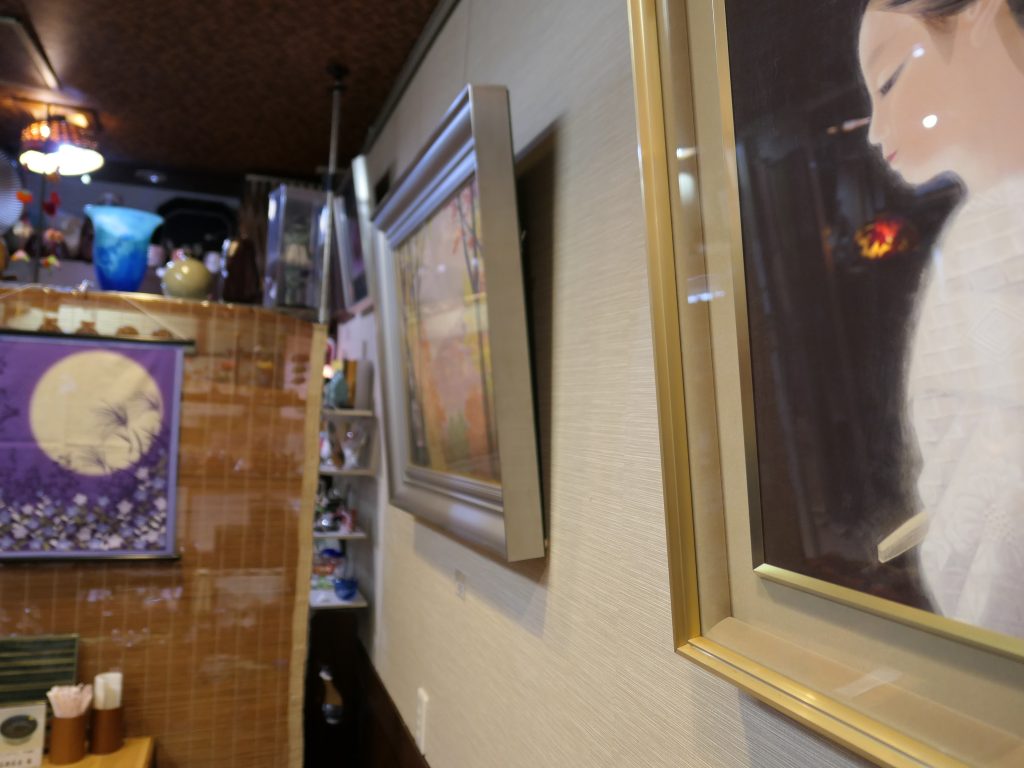 和風の雑貨や絵画が販売・飾られていて、おかみさんに尋ねたところ、創業50年の昔ながらのお茶スポットでした。